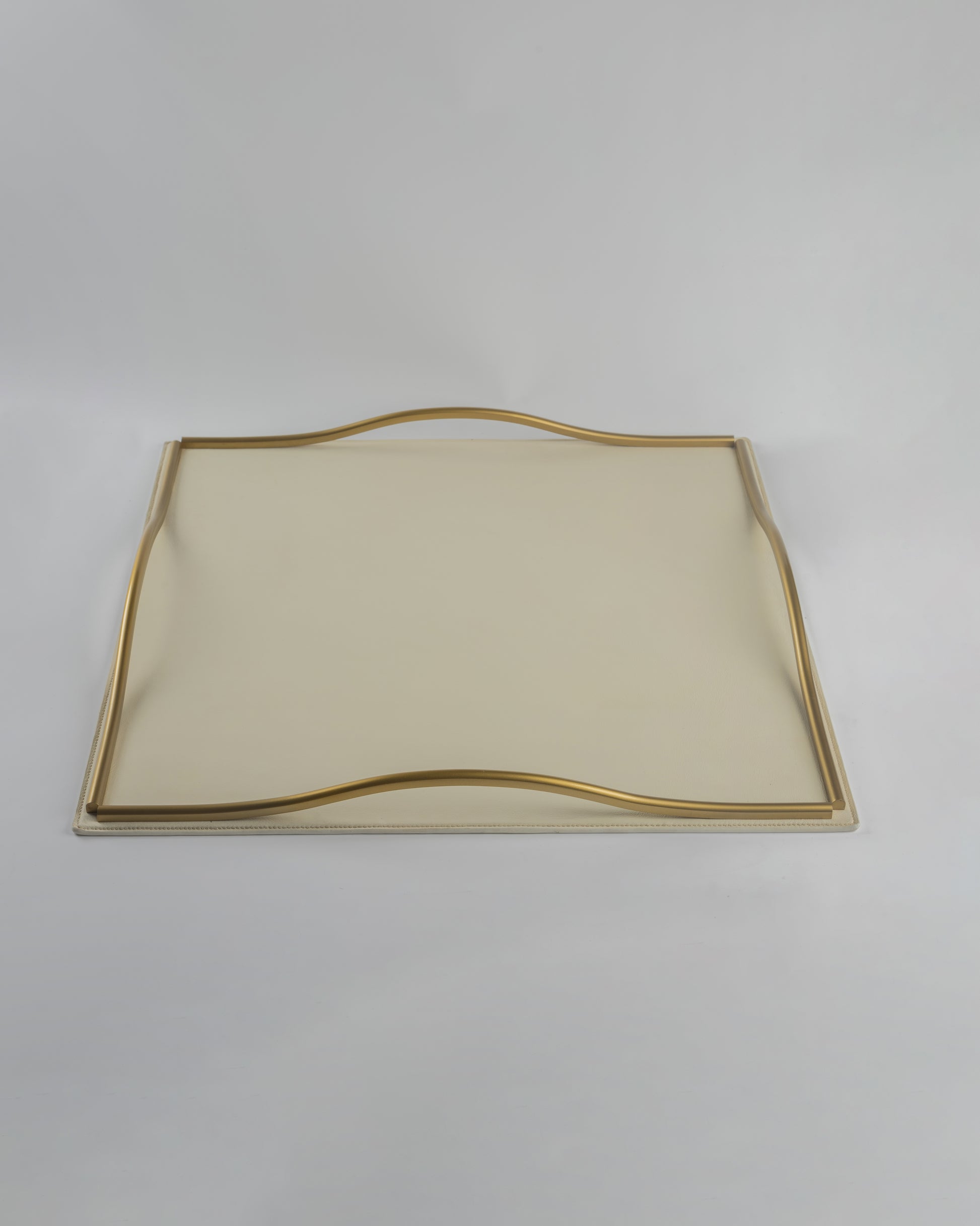 The Majestic is designed to captivate, where sculpted metal handles flow seamlessly along its edges, creating a sense of rhythm and refinement. Wrapped in supple leather, its structured form balances strength with fluidity. More than a tray, it transforms any setting into an experience of grace, craftsmanship, and understated luxury.